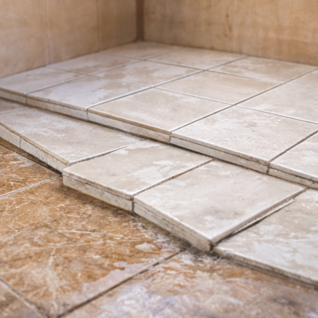 moisture penetration causing tiles to lift or crack